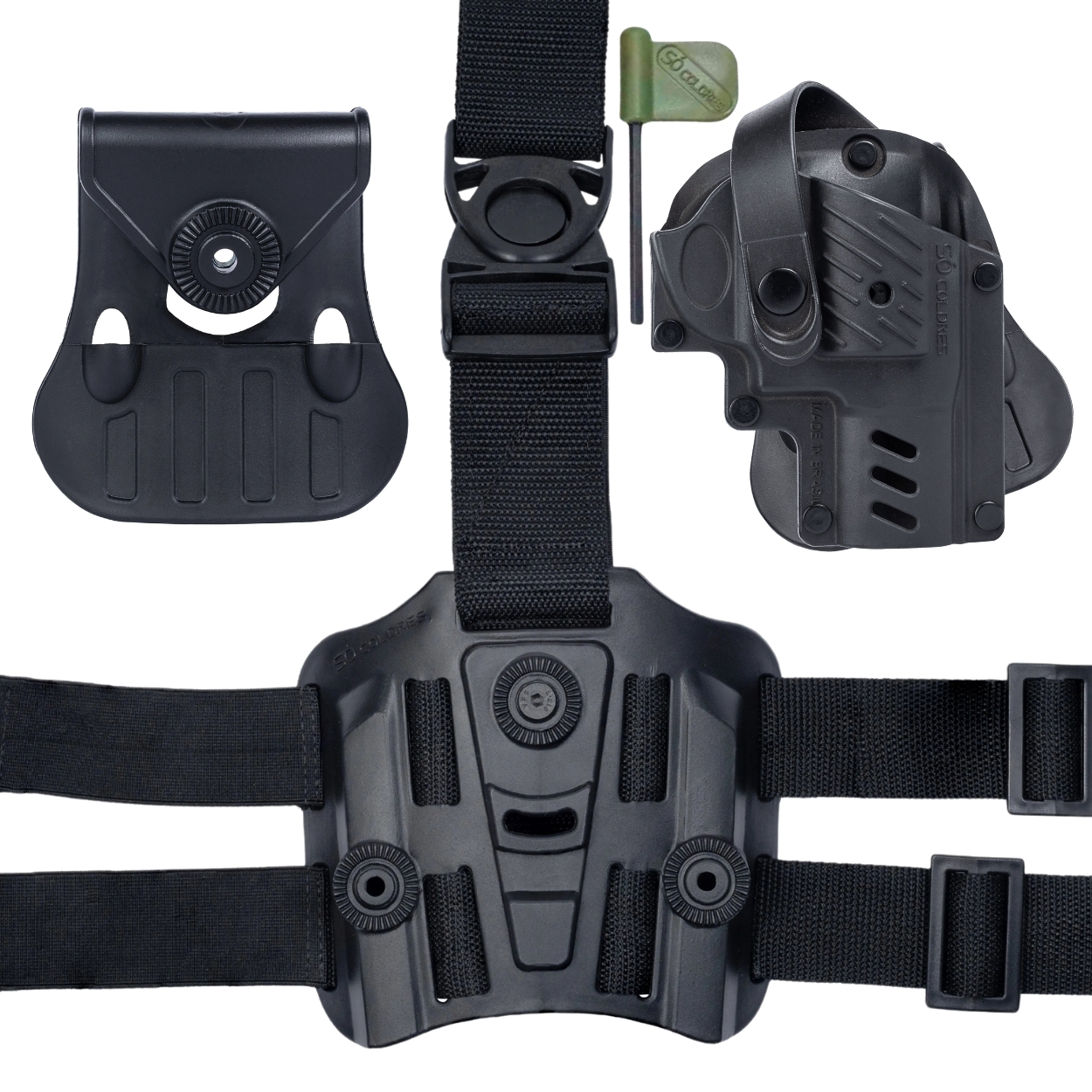 A Plataforma de Perna Universal Só Coldres é Produzida em polietileno moldável, possui cintas de pernas elásticas e com regulagem que se ajustam a largura da perna, presilhas de polipropileno super resistentes, serve para coldres rotativos de várias marcas como: SÓ COLDRES, BÉLICA, BLACKHAWK, IMI, TAURUS, CYTAC e MAYNARDS.