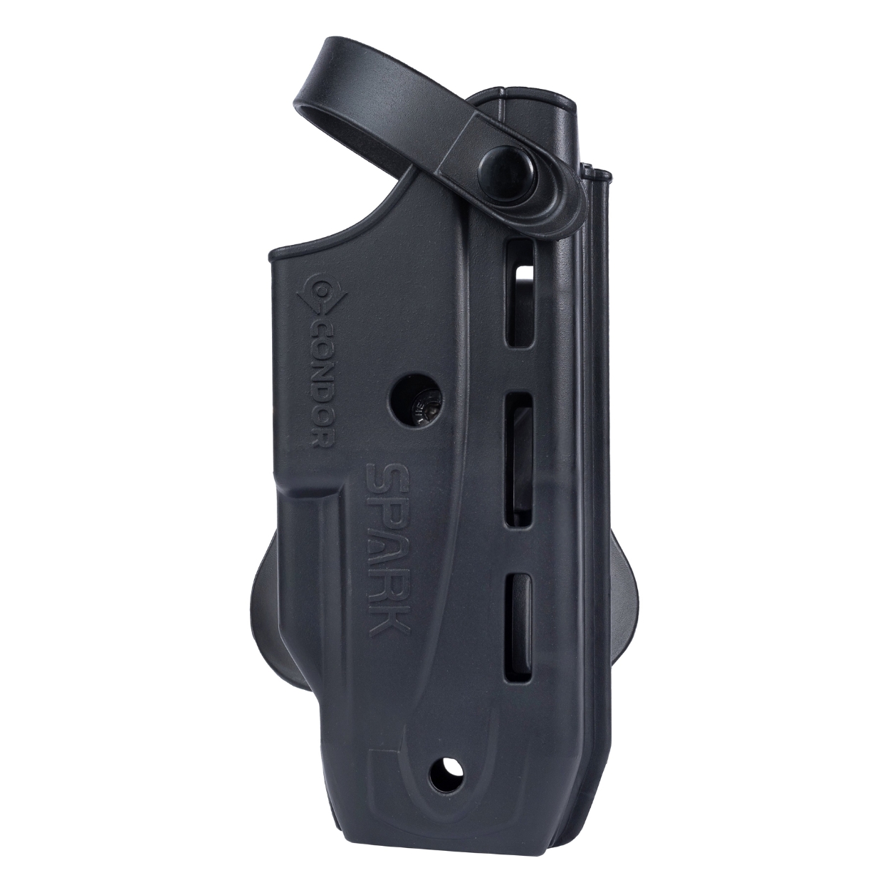 Com sistema de retenção dupla — trava no guarda-mato e alça de segurança com botão de liberação —, o Spark garante que sua arma fique protegida contra desarmes e ainda assim pronta para ser sacada no momento certo. A base giratória permite ajustar o ângulo conforme sua preferência, trazendo mais ergonomia e conforto durante o uso prolongado.