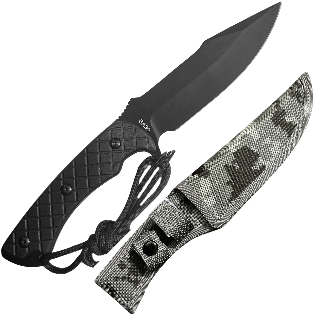 A Faca Tática Militar Selva Full Tang com Bainha Camuflada é resistente e confiável, ideal para trilhas, camping, sobrevivência e uso geral. Possui lâmina em aço carbono com construção full tang (inteiriça), garantindo maior durabilidade e segurança. O cabo ergonômico oferece firmeza no manuseio, e acompanha bainha em nylon camuflado com passador de cinto para transporte prático.