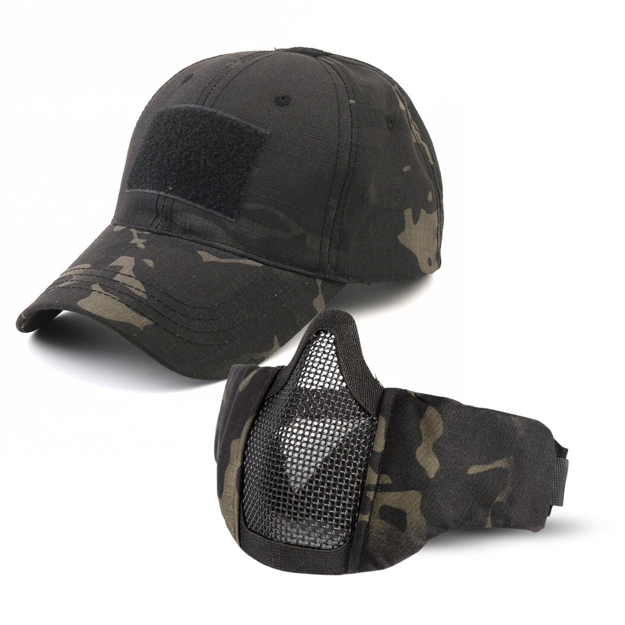 1 Kit Mascara Meia Face Comfort + Boné Tático Militar Com Velcros - Multicam Black